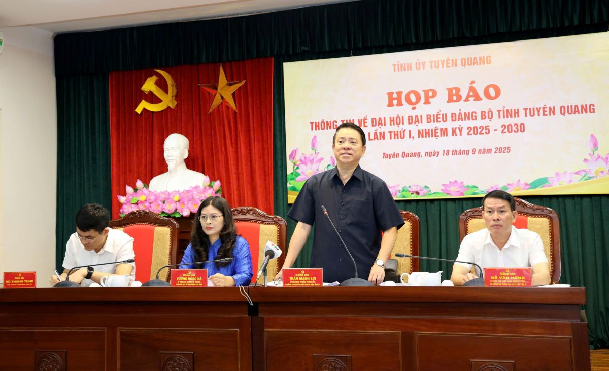 Phát biểu tại buổi họp báo, đồng chí Trần Mạnh Lợi, Ủy viên Ban Thường vụ Tỉnh ủy, Trưởng Ban Tuyên giáo và Dân vận Tỉnh ủy Tuyên Quang cho biết, trong không khí phấn khởi, tin tưởng hướng về Đại hội đại biểu toàn quốc lần thứ XIV của Đảng, Đảng bộ tỉnh Tuyên Quang đang tích cực chuẩn bị tổ chức Đại hội đại biểu Đảng bộ tỉnh lần thứ I, nhiệm kỳ 2025 - 2030. Đây là Đại hội đầu tiên sau hợp nhất tỉnh; là dấu mốc quan trọng trong đời sống chính trị của Đảng bộ và Nhân dân các dân tộc tỉnh Tuyên Quang.