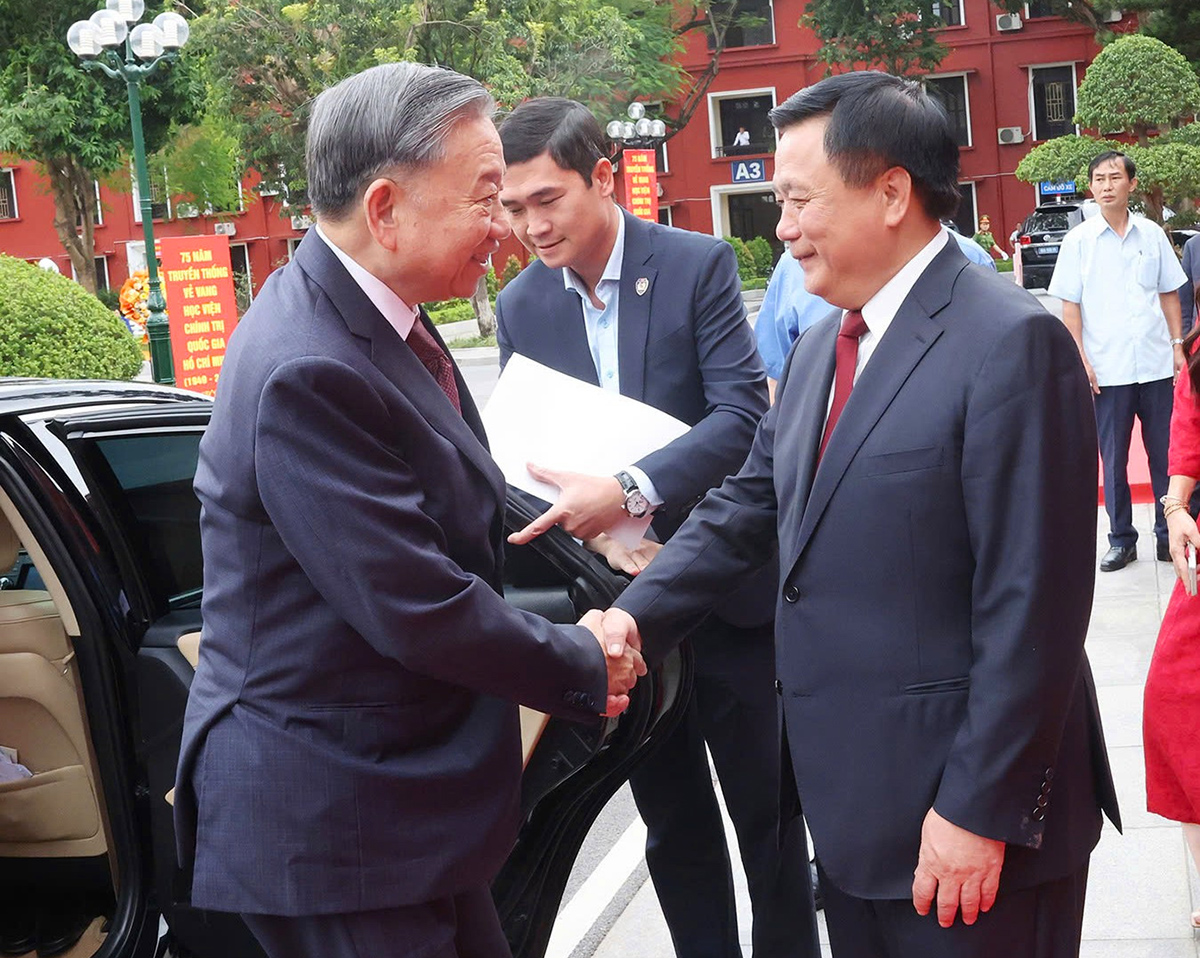 Tổng Bí thư, Chủ tịch nước Tô Lâm đến dự Lễ kỷ niệm 75 năm truyền thống Học viện Chính trị quốc gia Hồ Chí Minh, ngày 19-7-2024 _Ảnh: TTXVN