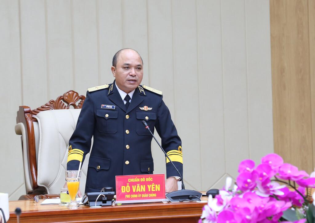 Chuẩn Đô đốc Đỗ Văn Yên, Phó Chính ủy Hải quân phát biểu tại Hội nghị.