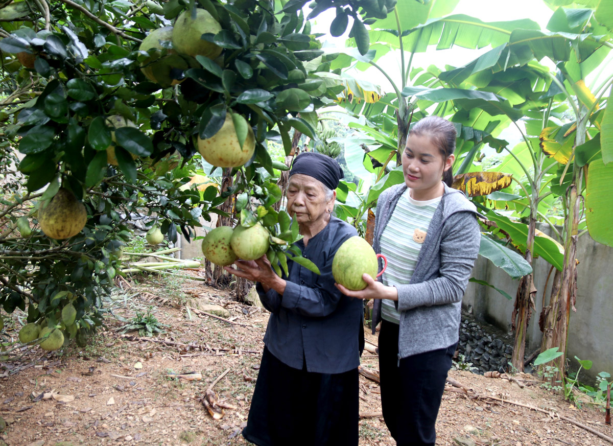 Đảng viên Nguyễn Thị Tảnh (trái), xã Phương Thiện (thành phố Hà Giang) nêu gương sáng trong phát triển kinh tế.