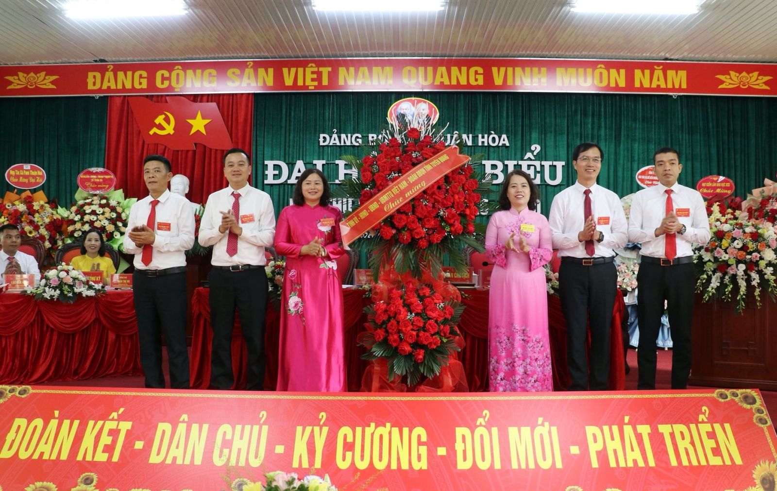 Đồng chí Lý Thị Lan thay mặt Tỉnh uỷ, HĐND, UBND, Ủy ban MTTQ Việt Nam tỉnh, Đoàn ĐBQH khoá XV tỉnh Tuyên Quang tặng hoa chúc mừng Đại hội