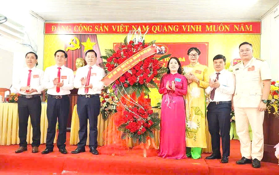 Đồng chí Lý Thị Lan, Ủy viên Ban Thường vụ Tỉnh ủy, Trưởng đoàn Đại biểu Quốc hội hoạt động chuyên trách khóa XV tỉnh tặng hoa chúc mừng Đại hội