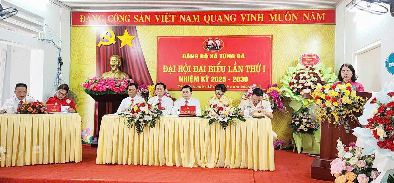 TGDV - Ngày 12/08/2025, Đảng bộ xã Tùng Bá đã long trọng tổ chức Đại hội Đại biểu Đảng bộ lần thứ I, nhiệm kỳ 2025 - 2030. Dự và chỉ đạo Đại hội có đồng chí Lý Thị Lan, Ủy viên Ban Thường vụ Tỉnh ủy, Trưởng đoàn Đại biểu Quốc hội hoạt động chuyên trách khóa XV tỉnh Tuyên Quang; đồng chí Phạm Ngọc Hiếu, Ủy viên Ủy ban Kiểm tra Tỉnh ủy. Cùng dự còn có lãnh đạo các công ty, doanh nghiệp, đơn vị đóng chân trên địa bàn xã; các đồng chí nguyên lãnh đạo qua các thời kỳ và 107 đại biểu ưu tú đại diện cho 526 đảng viên đến từ 24 tổ chức cơ sở đảng trực thuộc Đảng bộ xã.