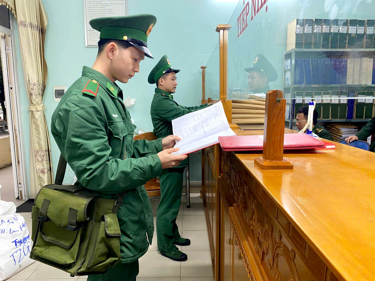 Các chiến sỹ Trung đội Thông tin, Phòng Tham mưu, Bộ Chỉ huy Bộ đội Biên phòng tỉnh nhận thư báo trước khi giao phát. |