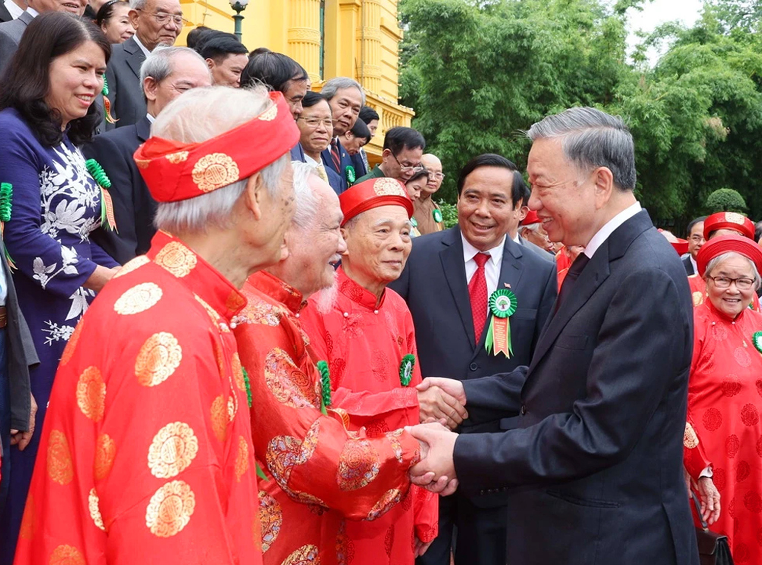 Tổng Bí thư Tô Lâm thăm hỏi các đại biểu là người cao tuổi tiêu biểu _Nguồn: TTXVN