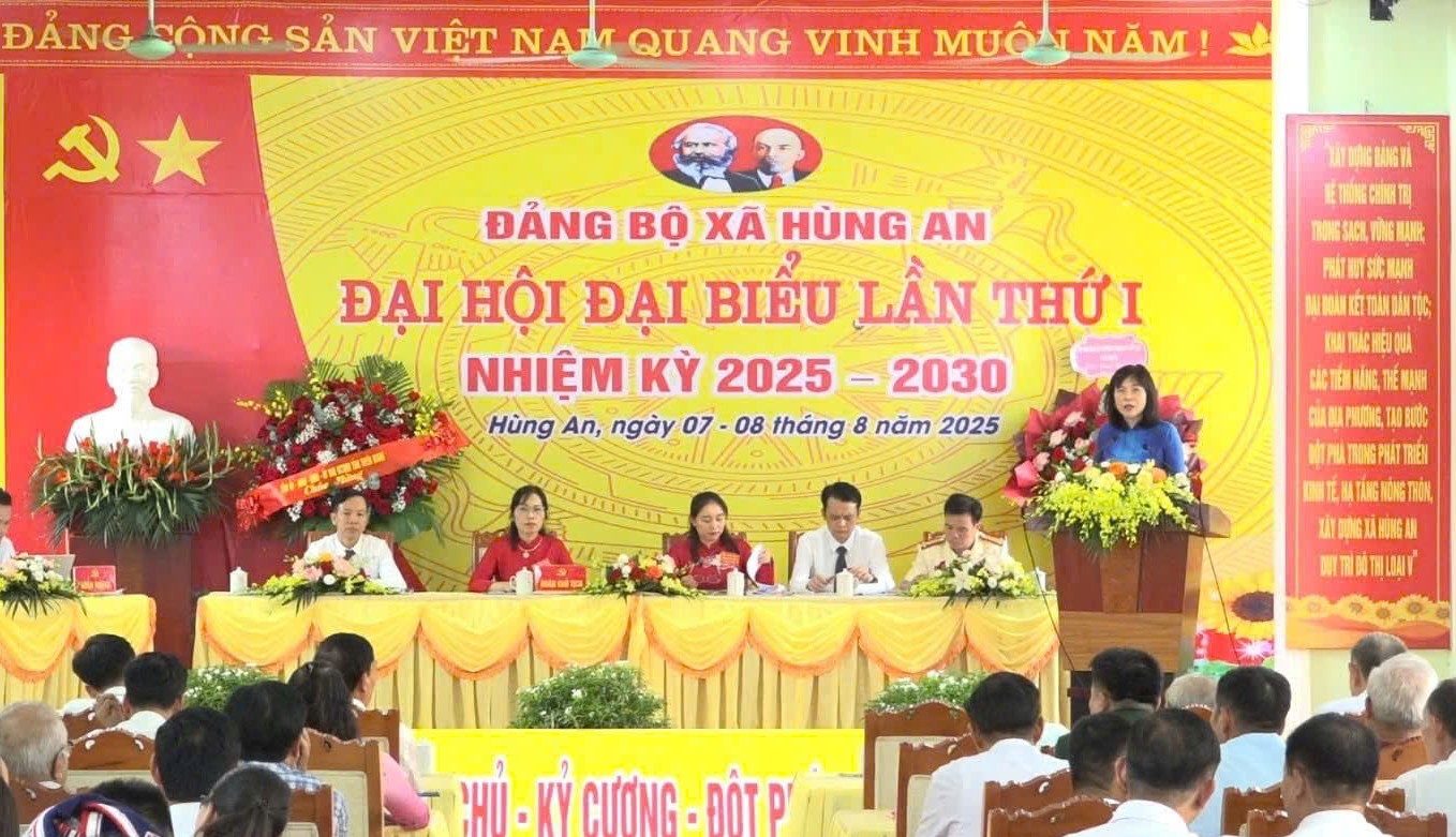 TGDV - Ngày 8-8-2025, Đảng bộ xã Hùng An tổ chức Đại hội đại biểu lần thứ I, nhiệm kỳ 2025-2030. Dự và chỉ đạo Đại hội có đồng chí Phạm Thị Minh Xuân, Phó Chủ tịch Hội đồng nhân dân tỉnh; đồng chí Nguyễn Lam Sơn, Phó Trưởng ban Thường trực Ban Tuyên giáo và Dân vận Tỉnh ủy; Đồng chí Nguyễn Chí Thâm, Phó Chủ nhiệm UBKT Tỉnh ủy.